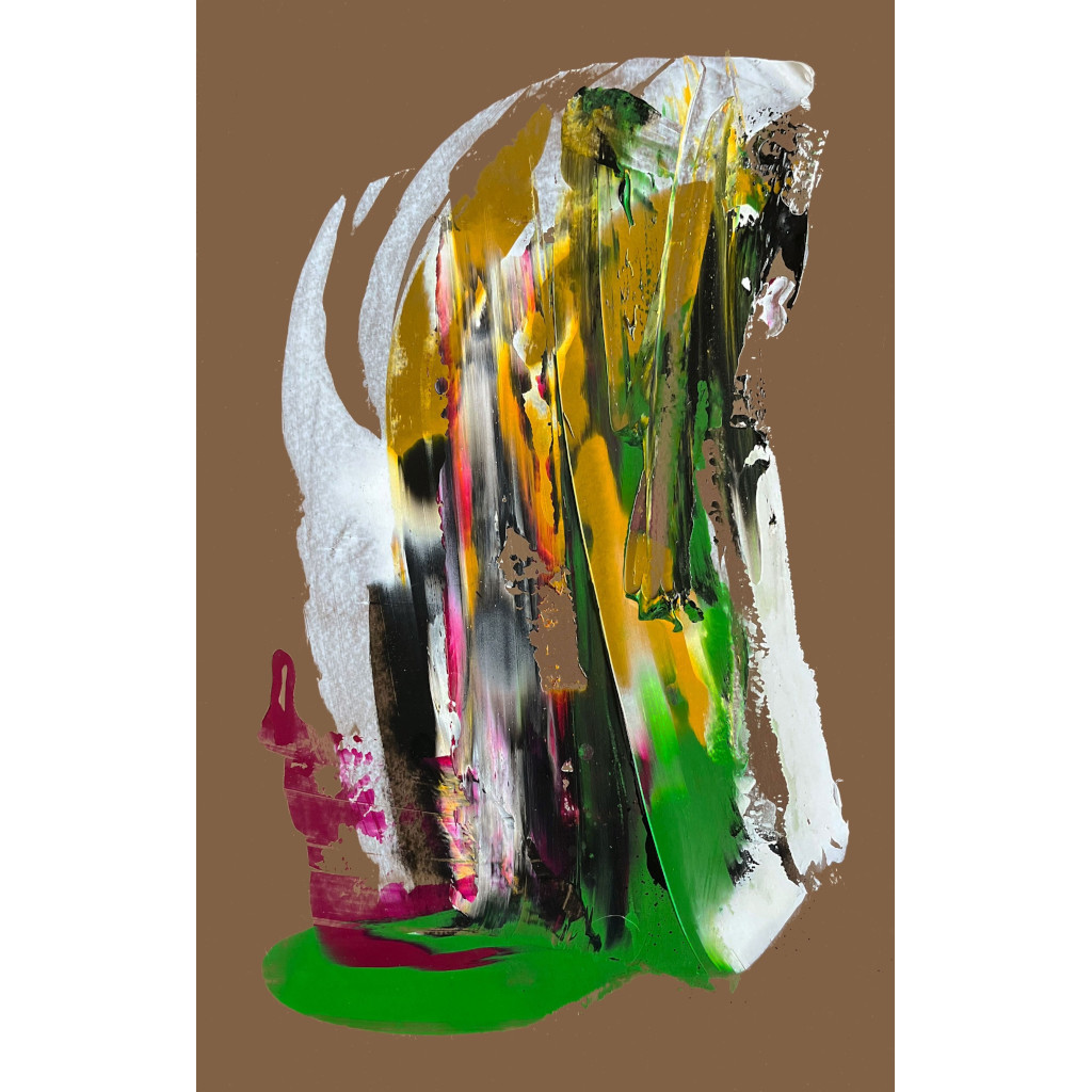 “Holding the Green”, 18”x12”, Mixed Media Painting on Paper, 2025