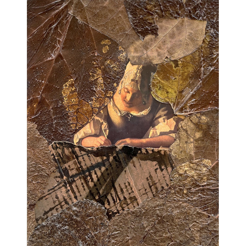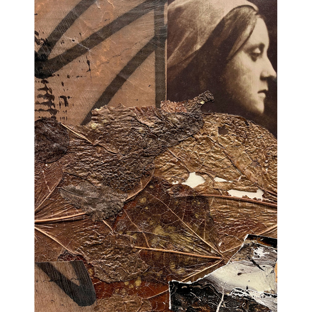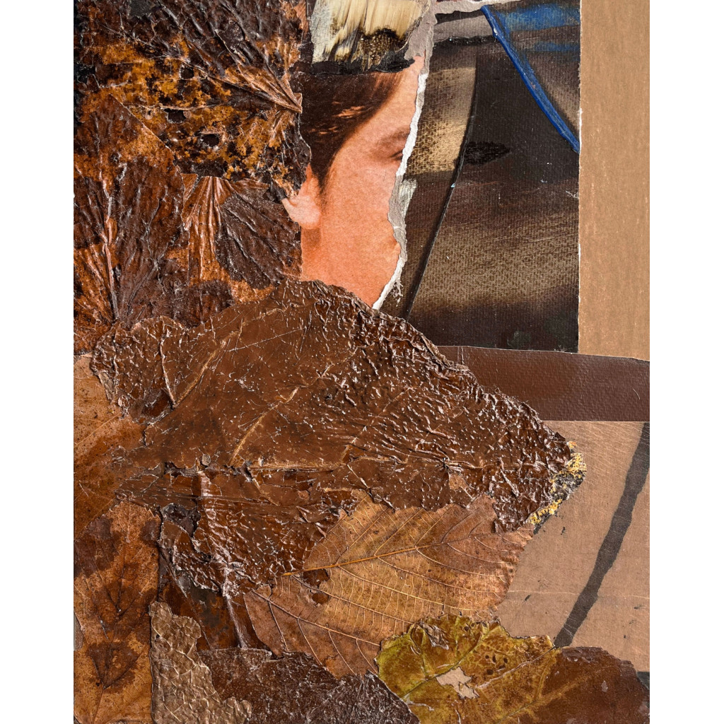 “Time to Leave 1”, 14”x11”, Mixed media collage on paper, 2025