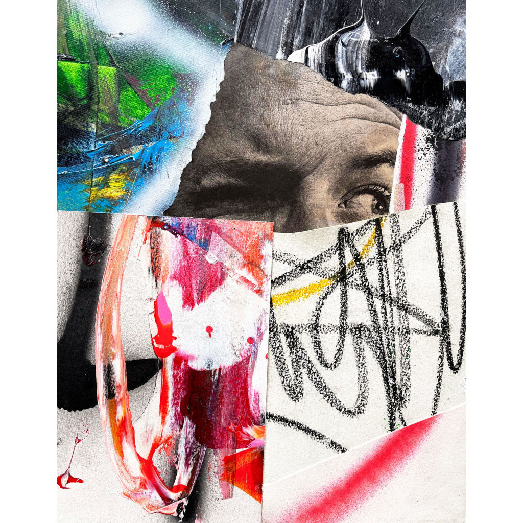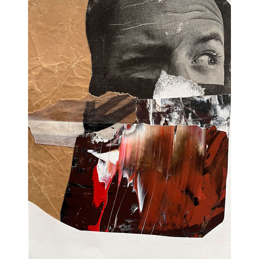 “Wanted 1”, 14”x11”, Mixed media collage on paper, 2025